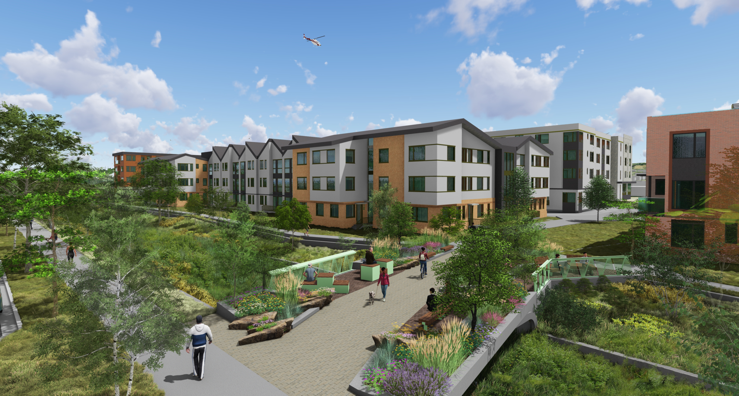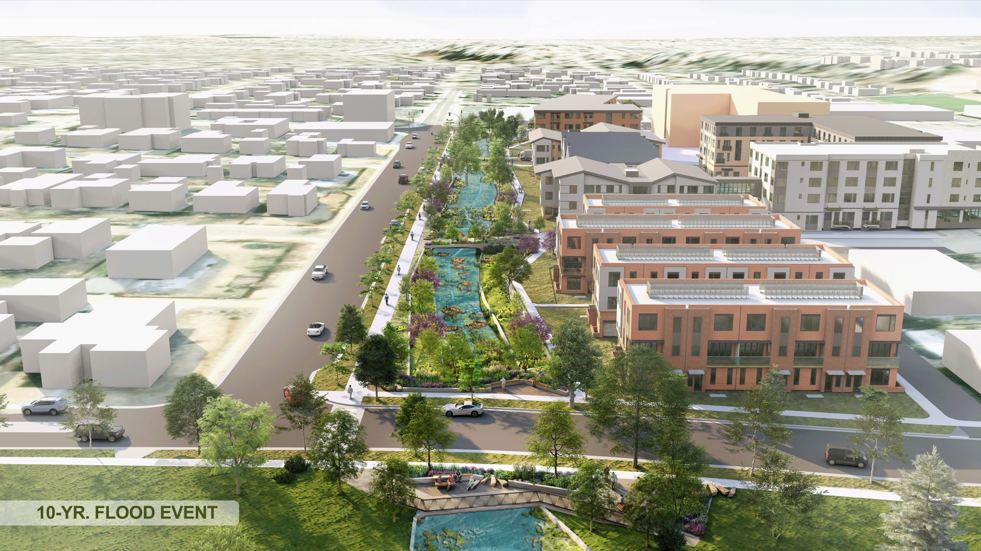 Stream has been a pivotal partner in the Alpine-Balsam Western City Campus redevelopment project. The redevelopment of the Alpine-Balsam site in Boulder, Colorado demonstrates how flood infrastructure can do more than mitigate risk—it can transform a former hospital site into a vibrant, community-centered place. Located at the headwaters of Goose Creek, the project plays a critical role in a broader, citywide effort to reduce flood risk throughout the watershed while advancing Boulder’s long-term resilience and climate goals.