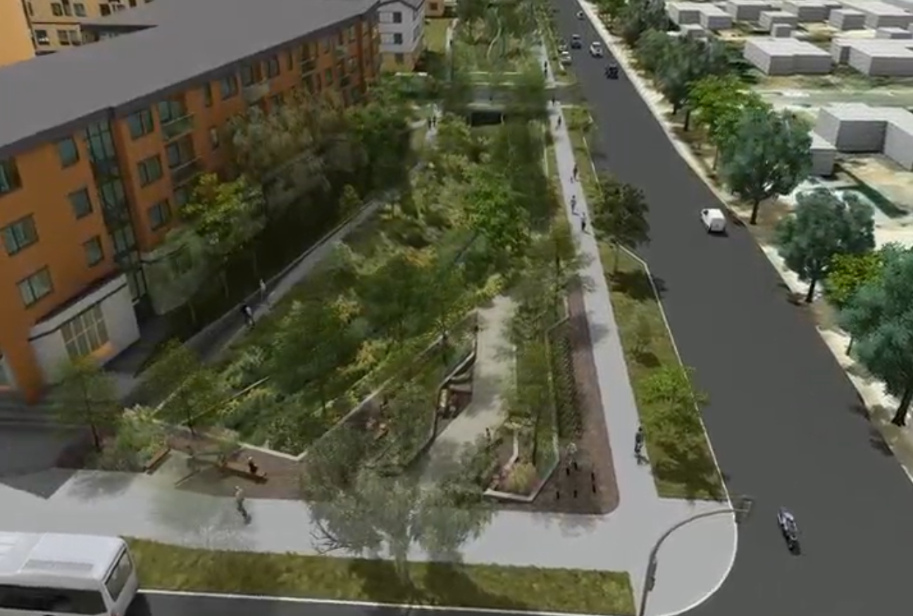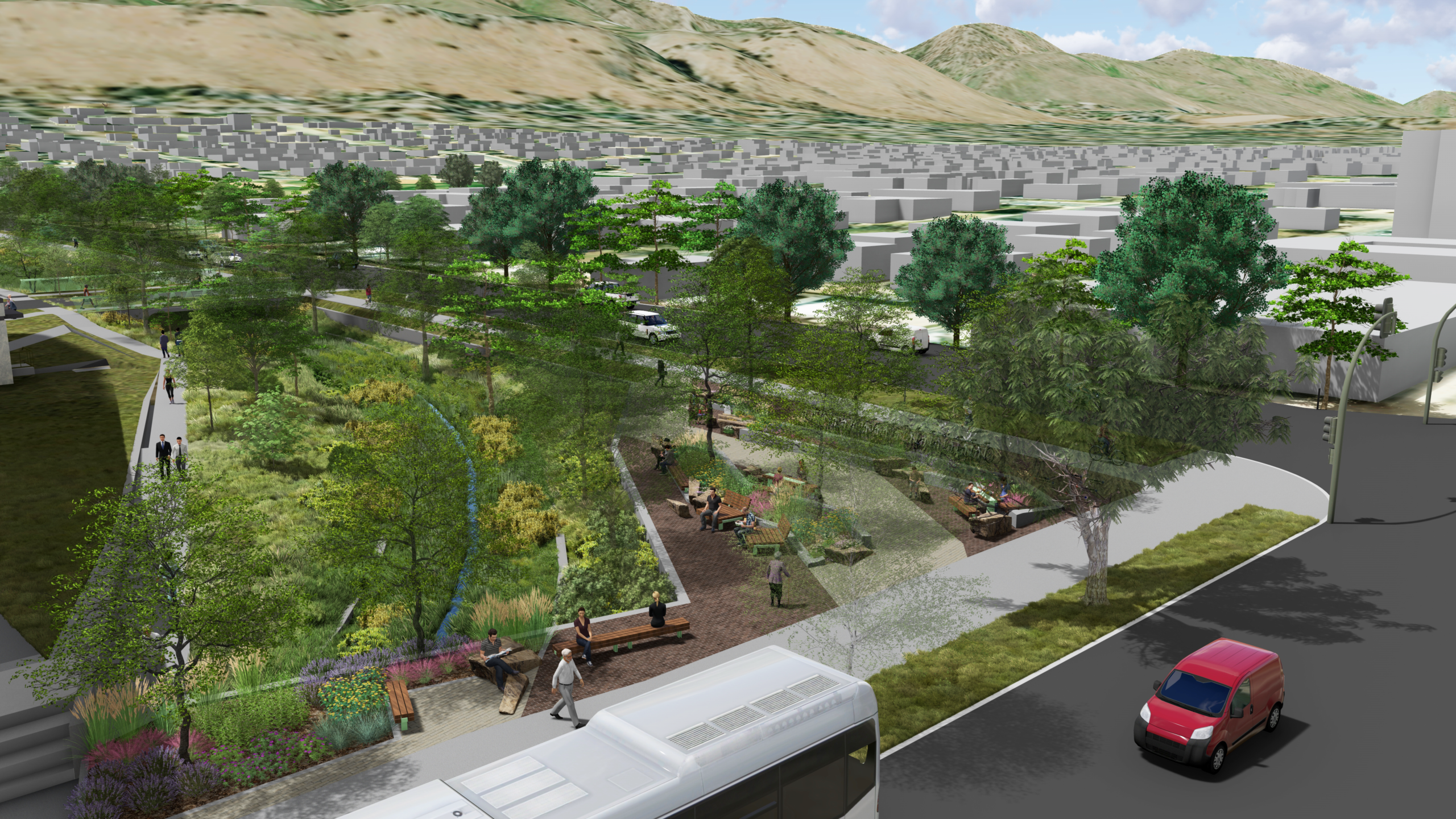 At the core of the project is the transformation of a conventional flood control channel along Balsam Avenue into a naturalized greenway that manages stormwater while enhancing ecological function and public life. An integrated green infrastructure approach combines grading, planting design, and hydraulic modeling to stabilize flows, improve water quality, and create habitat. Complementing this system, green infrastructure is embedded within the Balsam Avenue right-of-way, where curbside bioretention and landscape-based treatment systems address roadway runoff and meet water quality requirements while contributing to the streetscape.